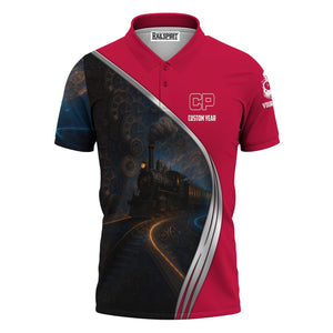 Railspirit Personalized Canadian Pacific Railroad Polo Shirt Steampunk Locomotive with Custom Year Train Shirt