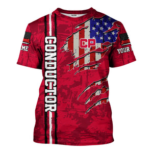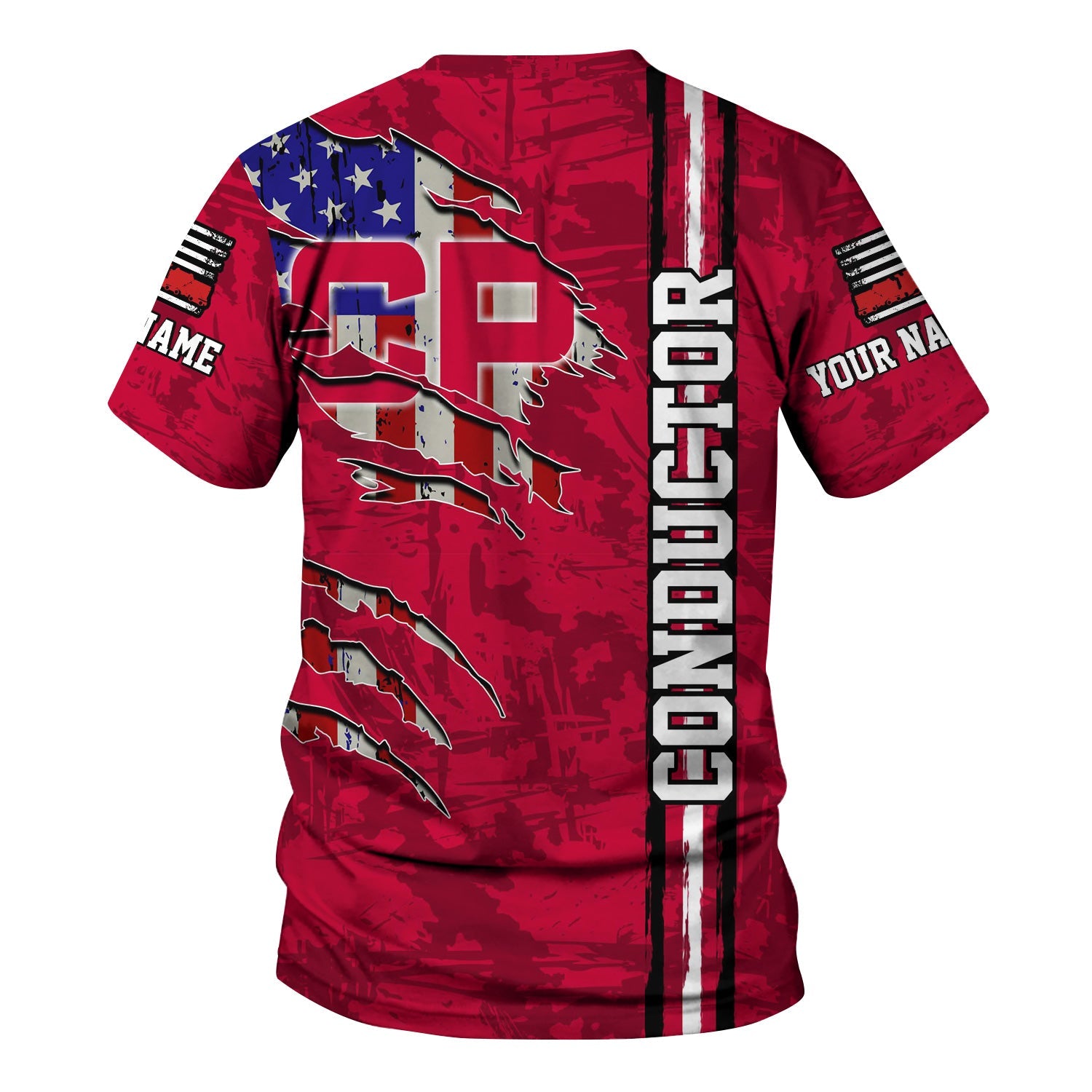Railspirit Personalized Canadian Pacific Railroad T-Shirt USA Flag Claw Art with Custom Job Train Shirt