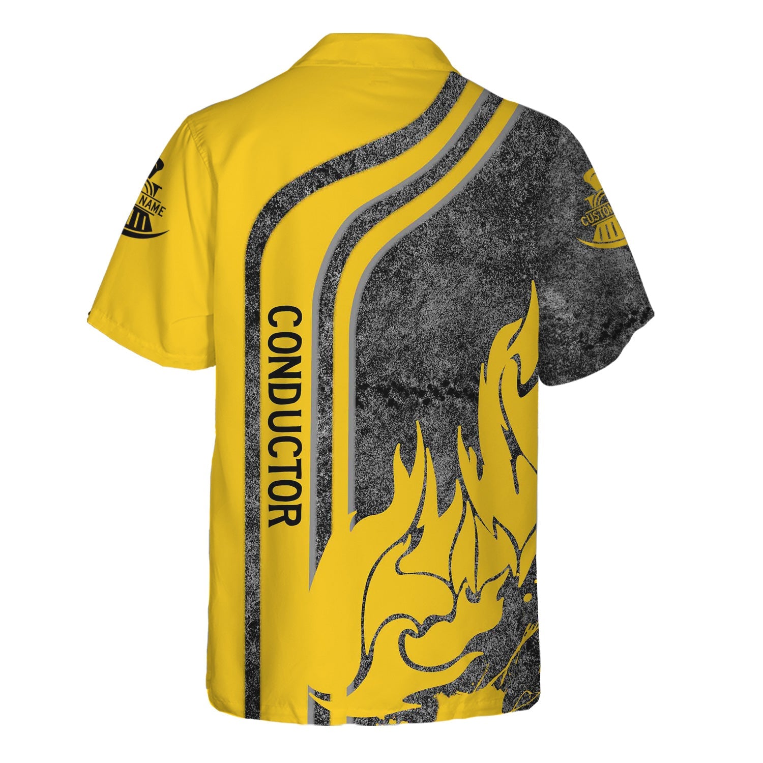Railspirit Personalized Central of Georgia Railway Hawaiian Shirt Flame Design with Custom Job Position Train Shirt