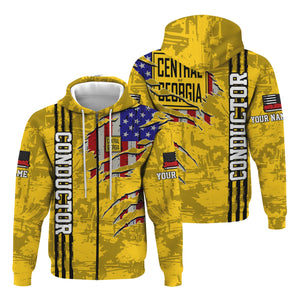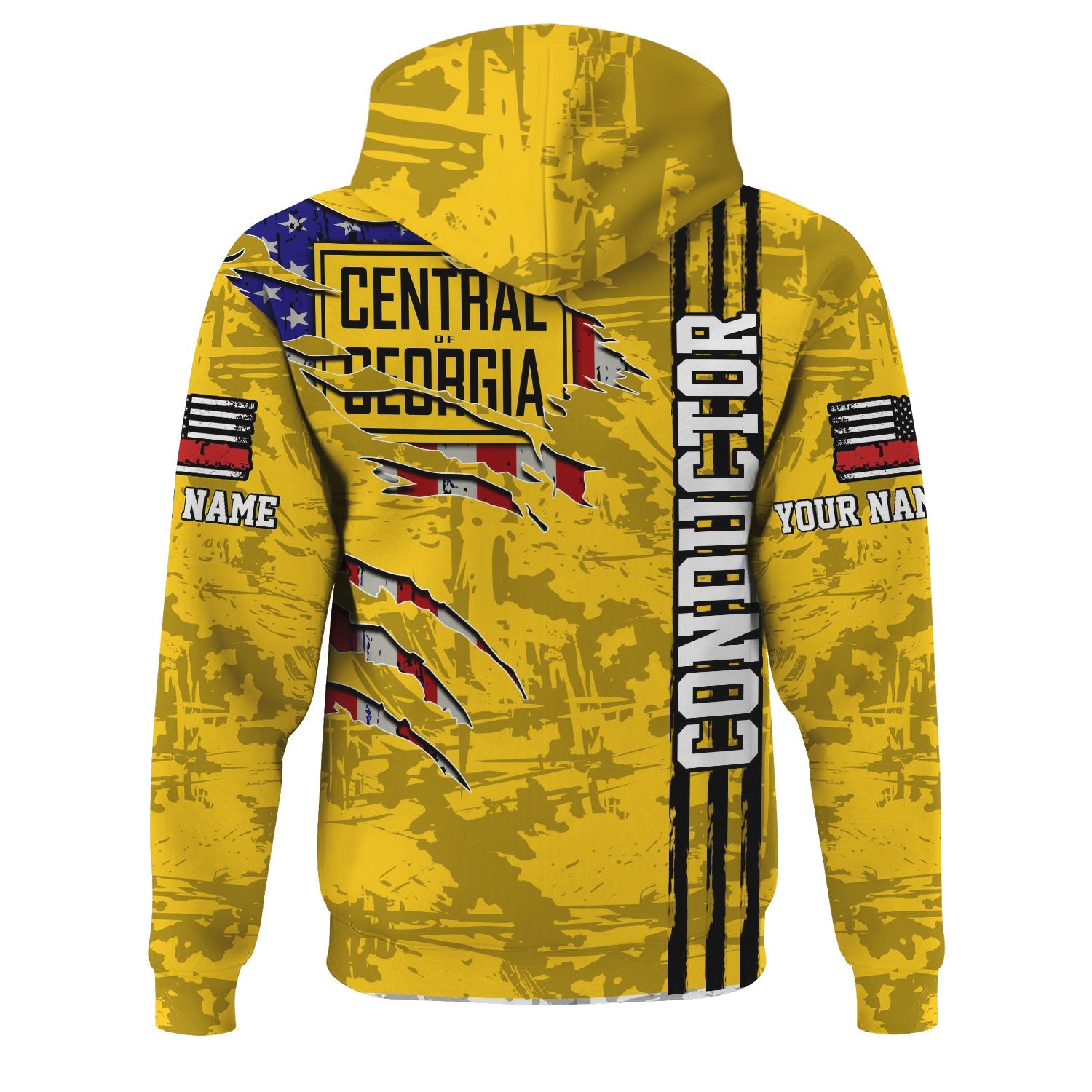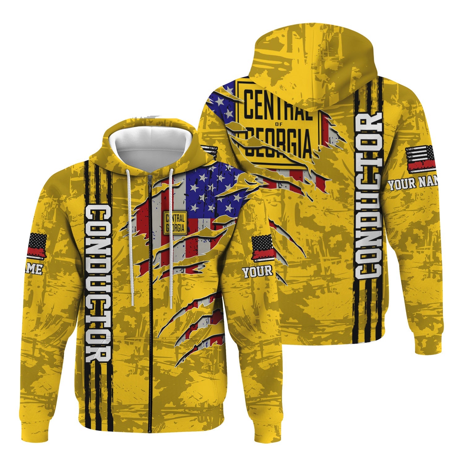 Railspirit Personalized Central of Georgia Railway Hoodie USA Flag Claw Art with Custom Job Train Zip Up Hoodie
