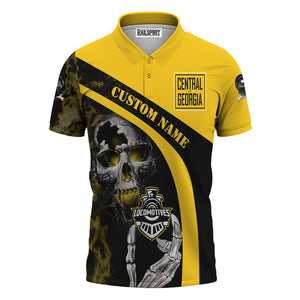 Railspirit Personalized Central of Georgia Railway Polo Shirt Flame Skull Design Train Shirt for Locomotive Fans