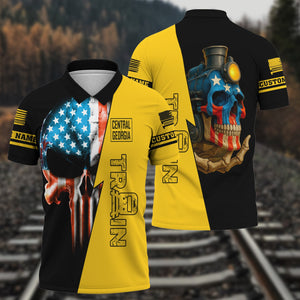 Railspirit Personalized Central of Georgia Railway Polo Shirt Train Skull American Flag Shirt All Over Print