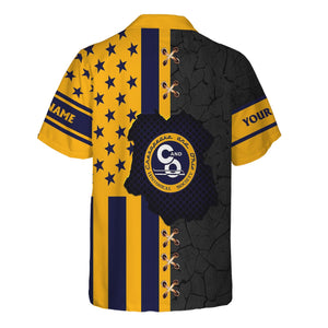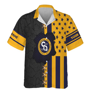 Railspirit Personalized Chesapeake and Ohio Railway Hawaiian Shirt American Flag with Crack Effect C&O Train Shirt