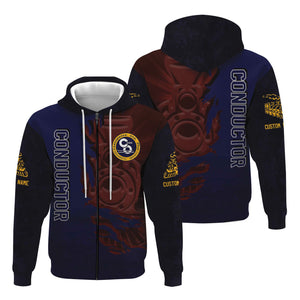 Railspirit Personalized Chesapeake and Ohio Railway Hoodie Blazing Style with Custom Position C&O Train Zip Up Hoodie