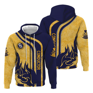 Railspirit Personalized Chesapeake and Ohio Railway Hoodie Flame Design with Custom Job Position C&O Train Zip Up Hoodie