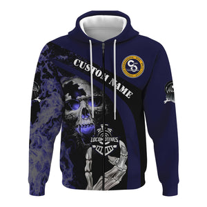 Railspirit Personalized Chesapeake and Ohio Railway Hoodie Flame Skull Design C&O Train Zip Up Hoodie for Locomotive Fans