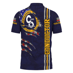 Railspirit Personalized Chesapeake and Ohio Railway Polo Shirt USA Flag Claw Art with Custom Job C&O Train Shirt