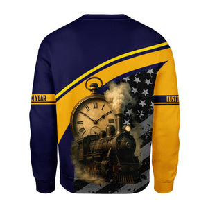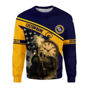 Railspirit Personalized Chesapeake and Ohio Railway Sweatshirt Classic Steam Engine With Retro Pocket Watch C&O Shirt All Over Print