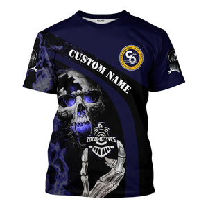 Railspirit Personalized Chesapeake and Ohio Railway T-Shirt Flame Skull Design C&O Train Shirt for Locomotive Fans