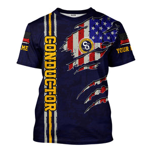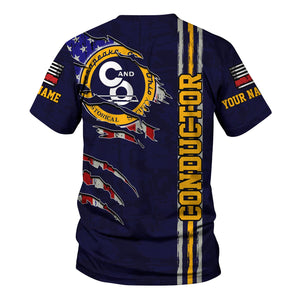 Railspirit Personalized Chesapeake and Ohio Railway T-Shirt USA Flag Claw Art with Custom Job C&O Train Shirt