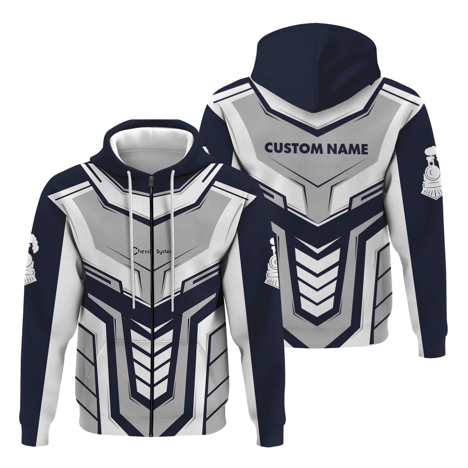 Railspirit Personalized Chessie System Railroad Hoodie Armor-Inspired Design Train Zip Up Hoodie All Over Print