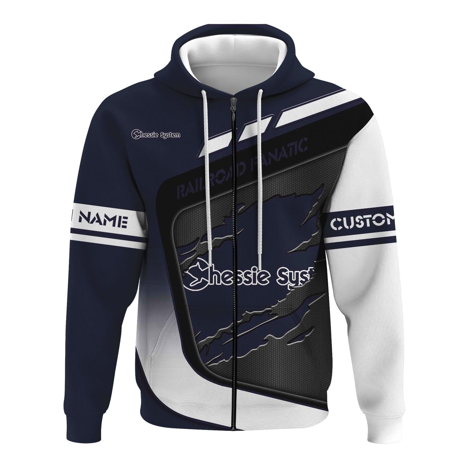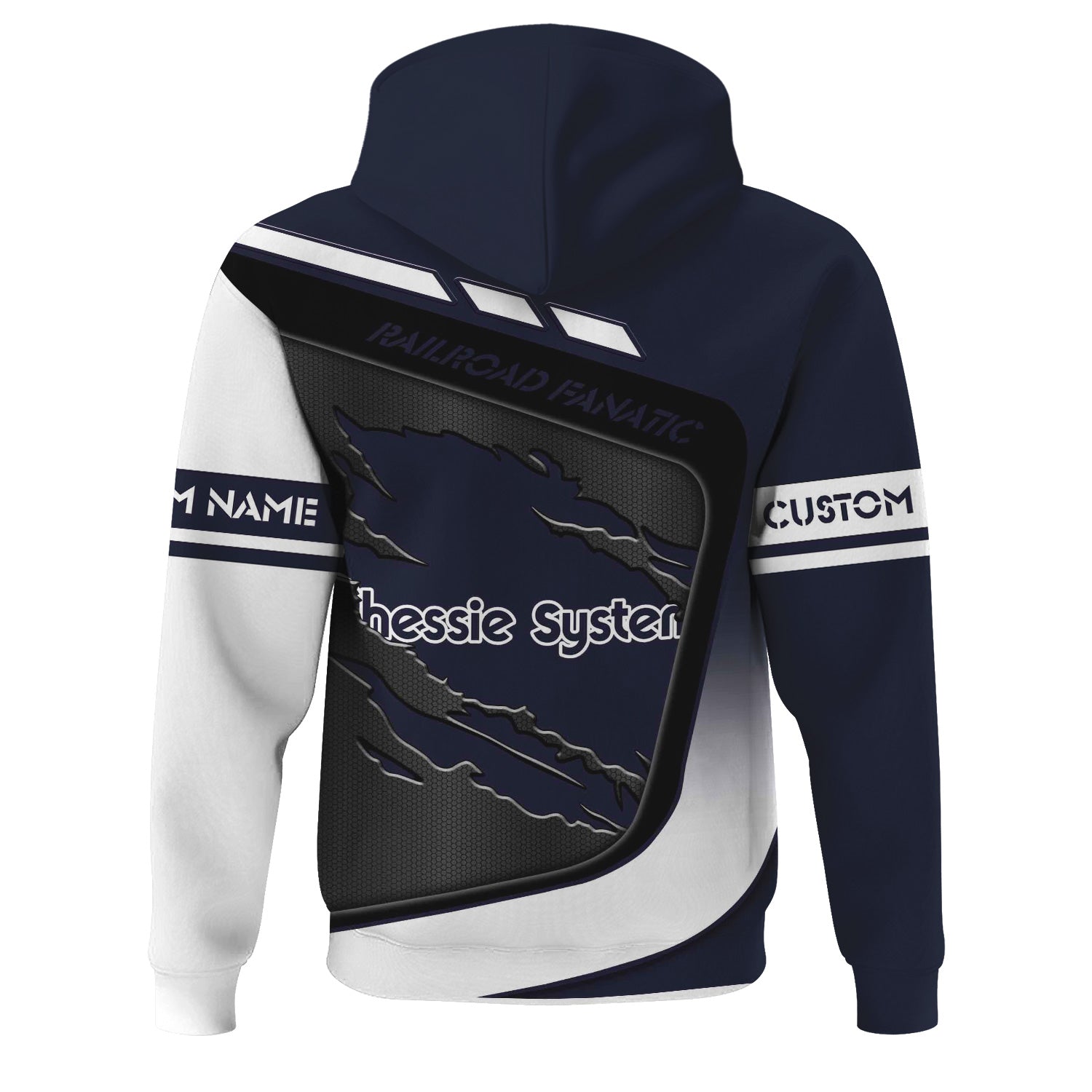 Railspirit Personalized Chessie System Railroad Hoodie Ripped Texture Style Train Zip Up Hoodie For Railroad Fanatic