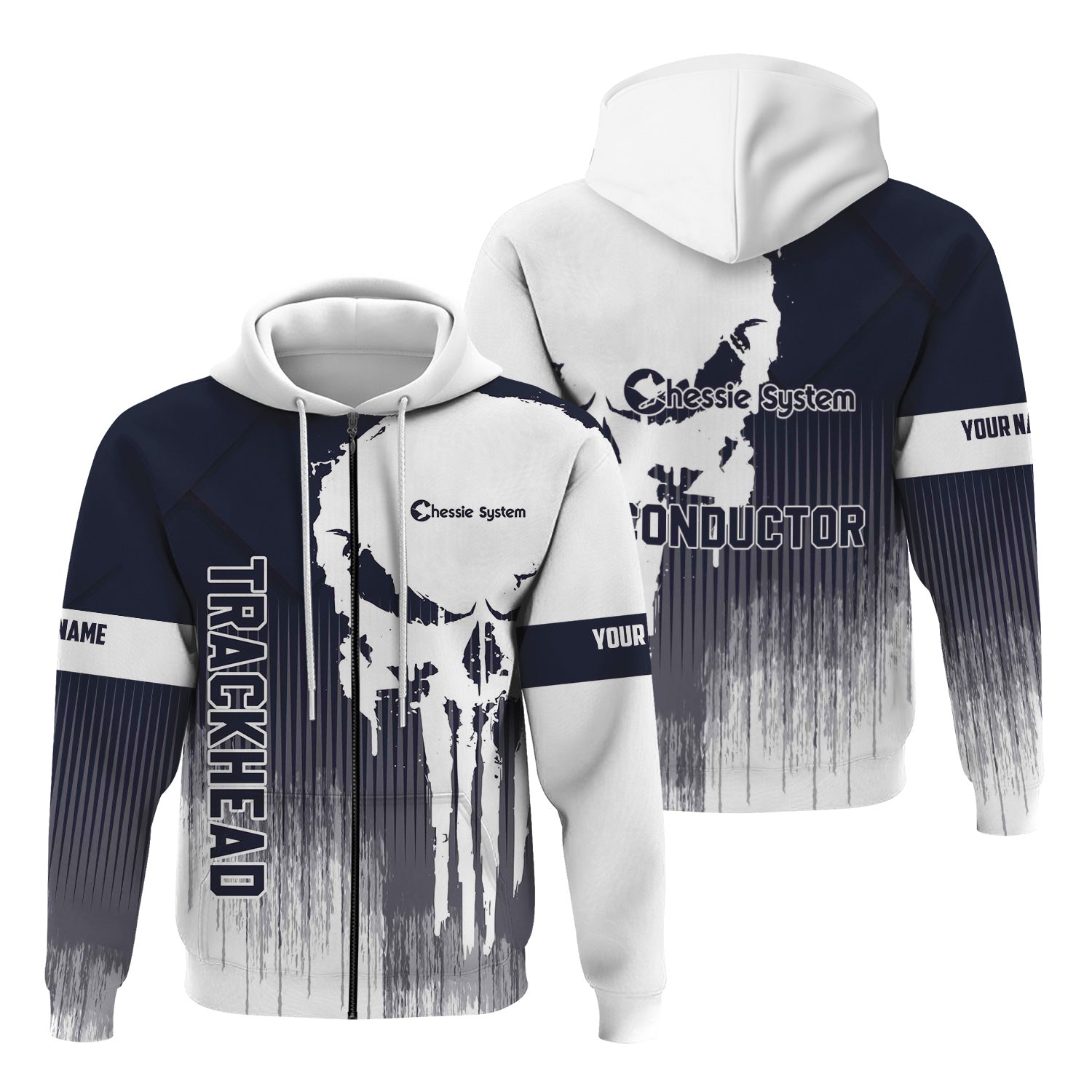 Railspirit Personalized Chessie System Railroad Hoodie Skull Design with Custom Job Train Zip Up Hoodie for Trackhead Crew