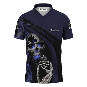 Railspirit Personalized Chessie System Railroad Polo Shirt Flame Skull Design Train Shirt for Locomotive Fans