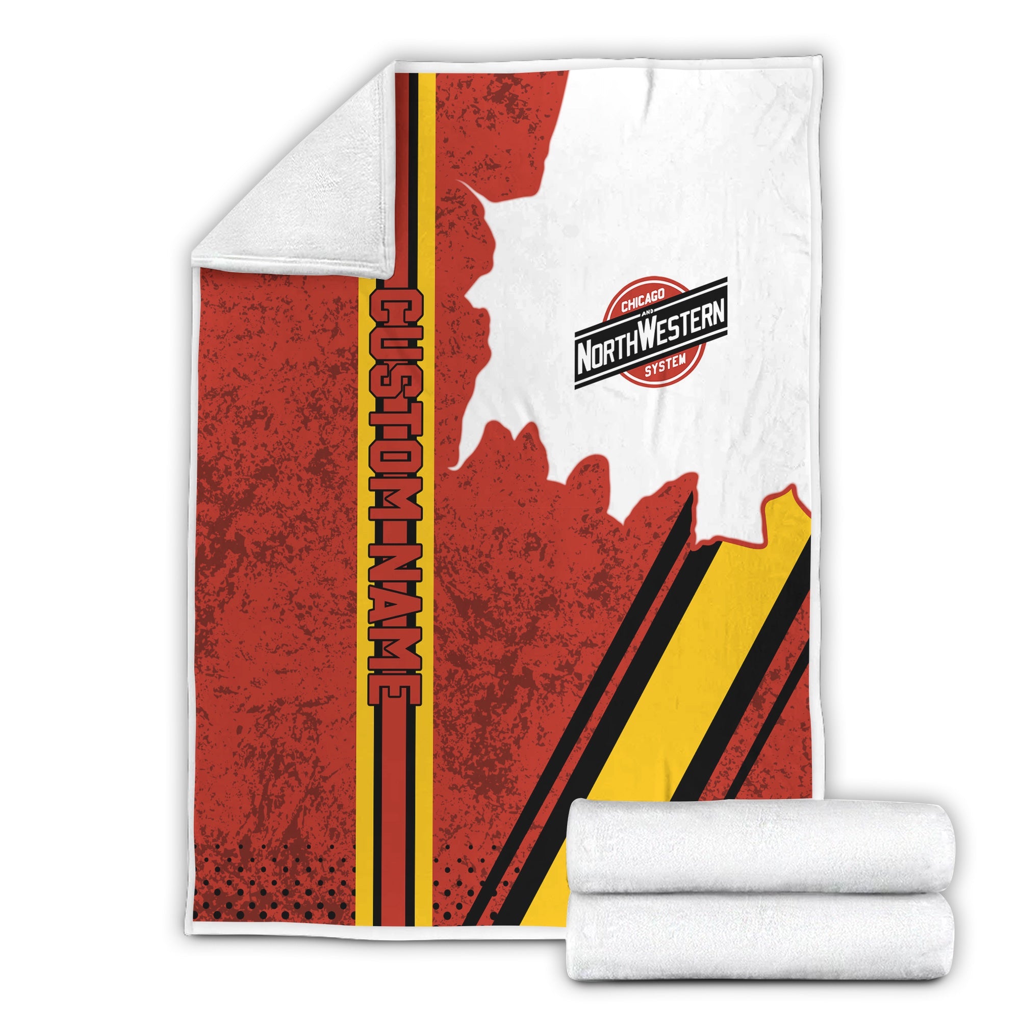 Railspirit Personalized Chicago and North Western Railway Blanket Vintage All Over Printed Blanket