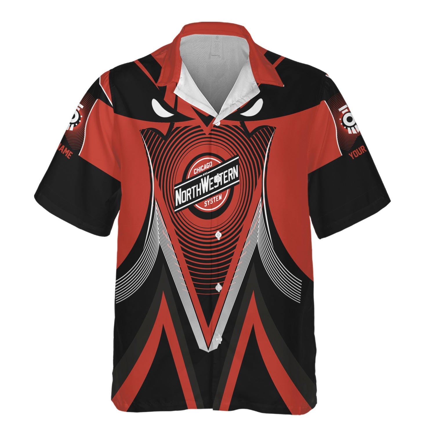 Railspirit Personalized Chicago and North Western Railway Hawaiian Shirt Vibrant Graphic Pattern Shirt For Train Enthusiasts