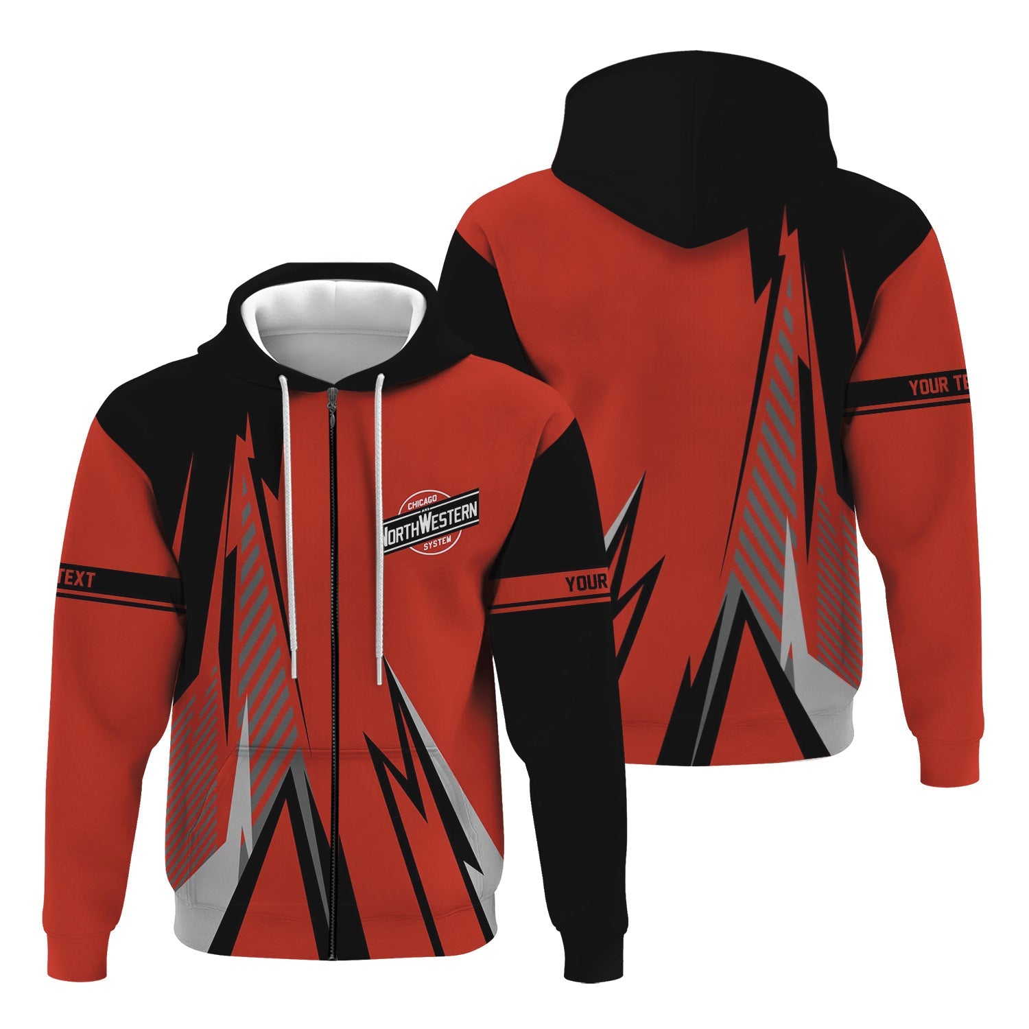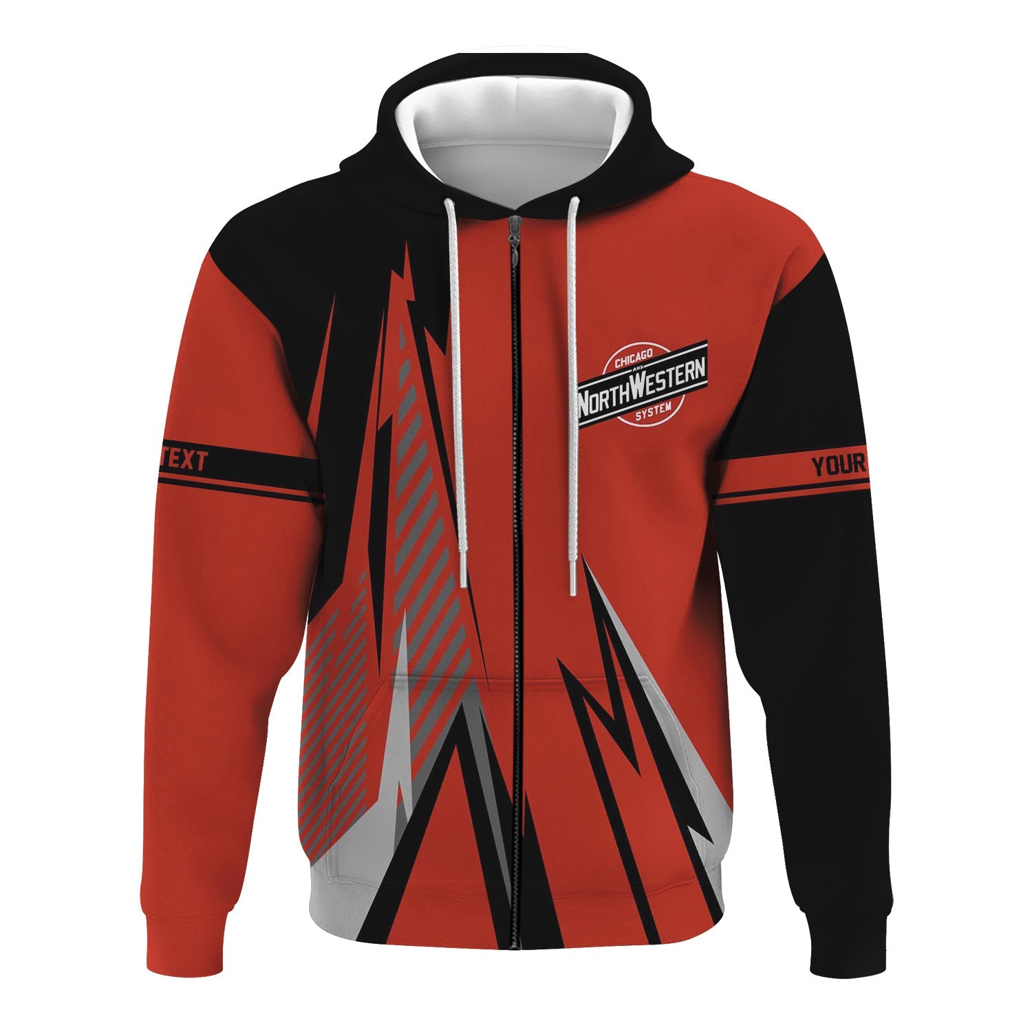 Railspirit Personalized Chicago and North Western Railway Hoodie Lightning-Inspired Railway Style Zip Up Hoodie For Train Lovers