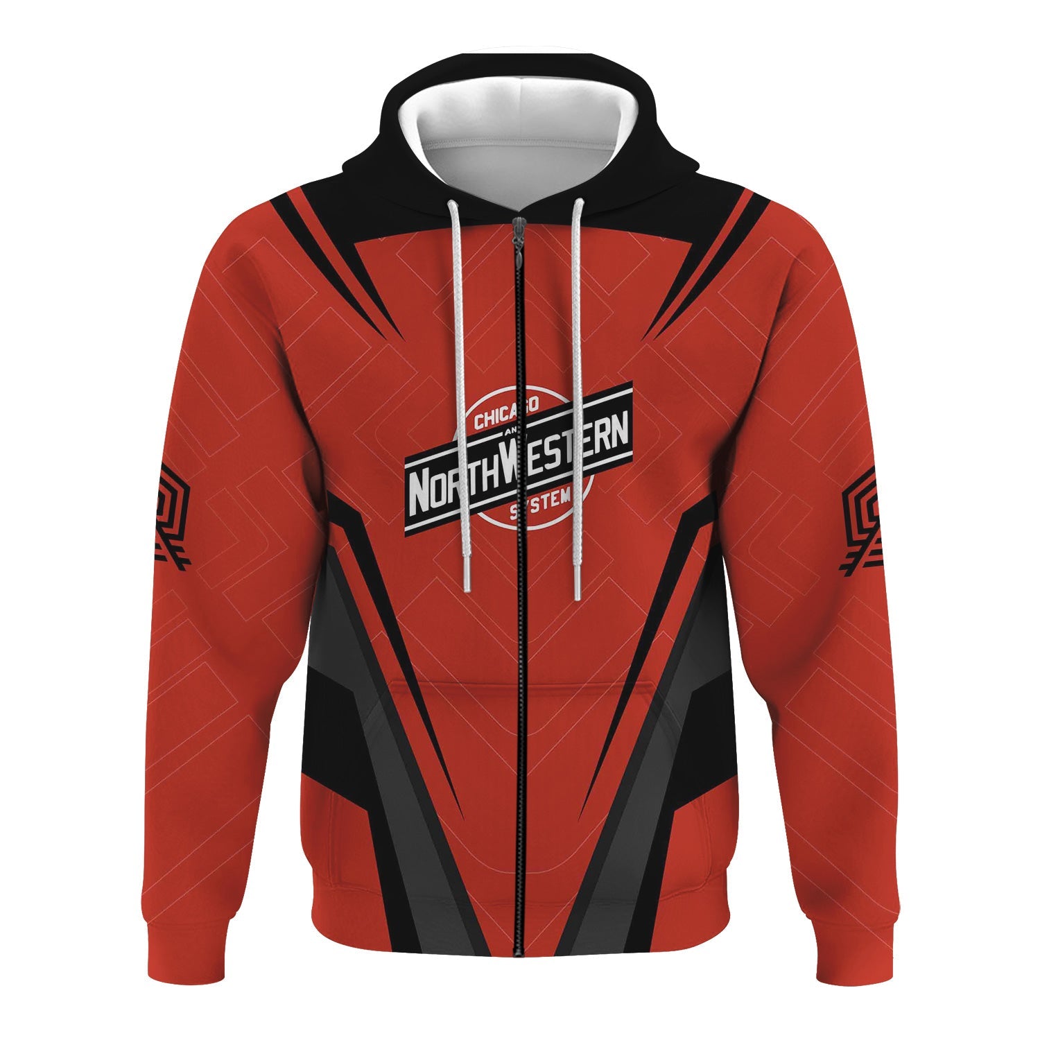 Railspirit Personalized Chicago and North Western Railway Hoodie Railway Inspired Apparel Train Zip Up Hoodie For Train Lovers