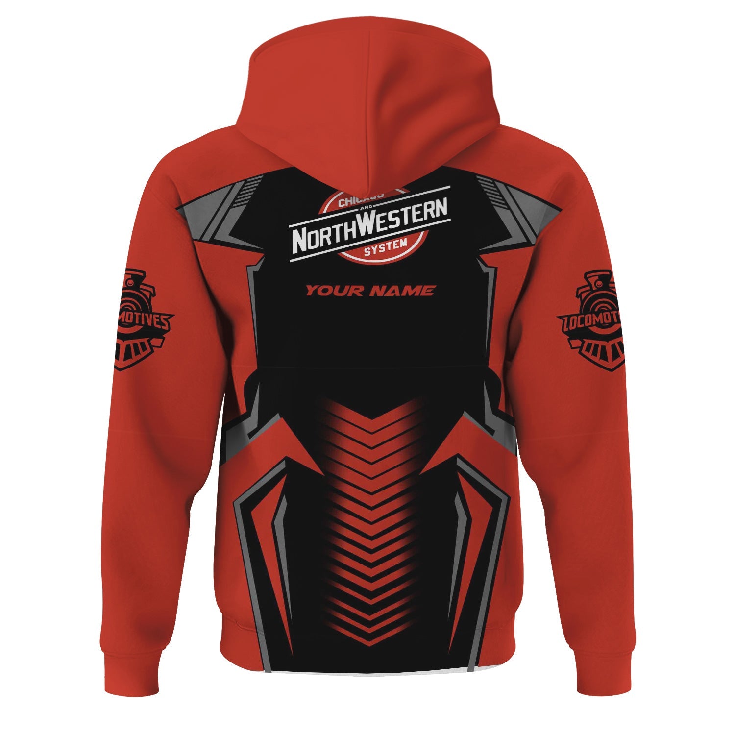 Railspirit Personalized Chicago and North Western Railway Hoodie Standout Style with Custom Position Train Zip Up Hoodie
