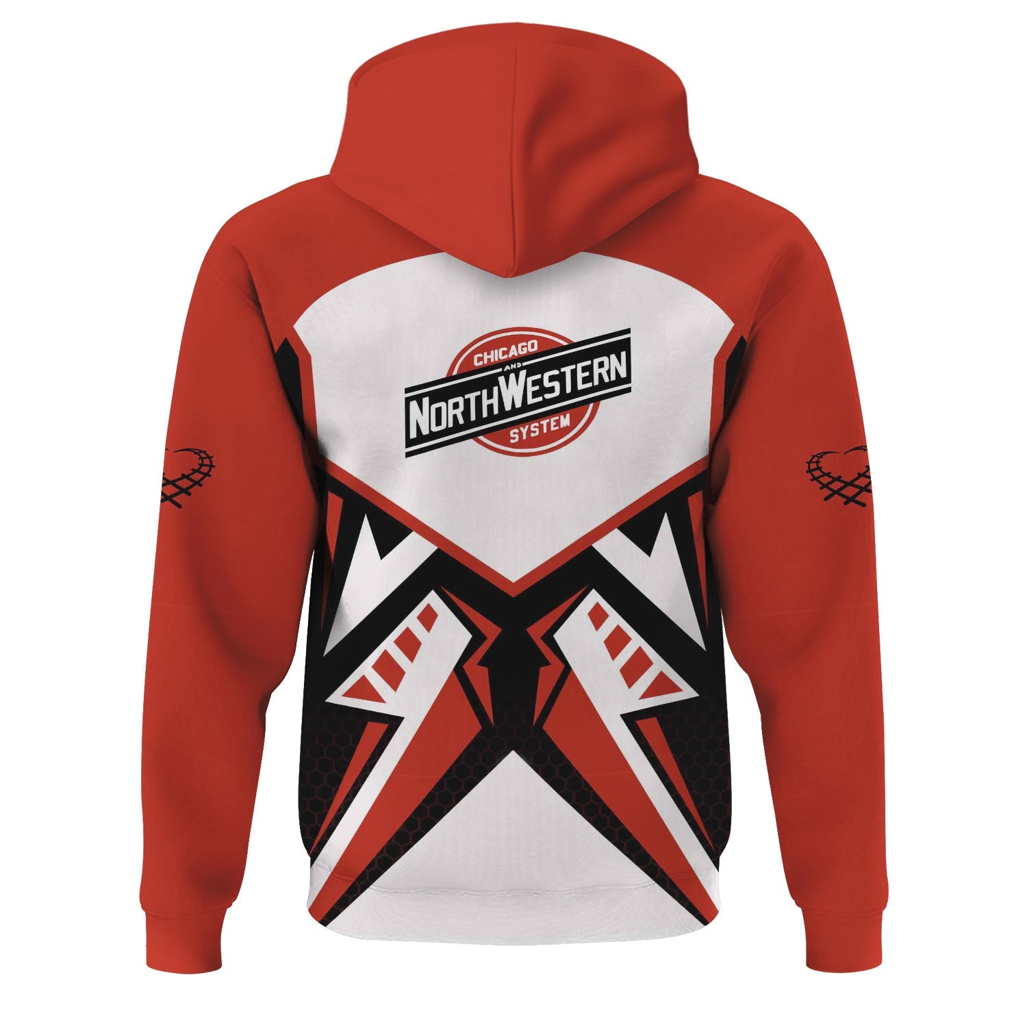 Railspirit Personalized Chicago and North Western Railway Hoodie Vibriant Style with Custom Position Train Zip Up Hoodie