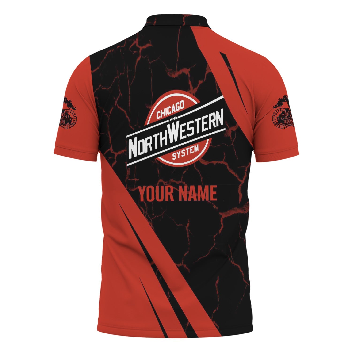Railspirit Personalized Chicago and North Western Railway Polo Shirt Crackle Texture Style Train Shirt For Trackhead
