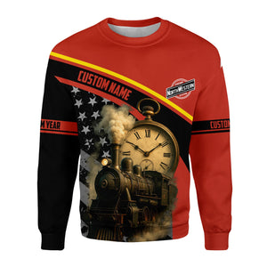 Railspirit Personalized Chicago and North Western Railway Sweatshirt Classic Steam Engine With Retro Pocket Watch Shirt All Over Print
