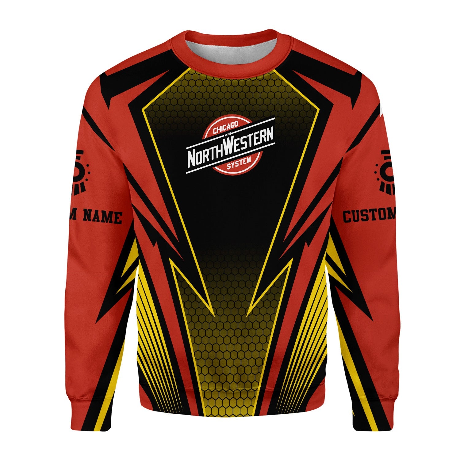 Railspirit Personalized Chicago and North Western Railway Sweatshirt Lightning Graphic Style Shirt Gift Idea For Train Lover