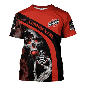 Railspirit Personalized Chicago and North Western Railway T-Shirt Flame Skull Design Train Shirt for Locomotive Fans