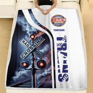 Railspirit Personalized Chicago, Burlington and Quincy Railroad Blanket Railroad Crossing Sign Blanket All Over Print