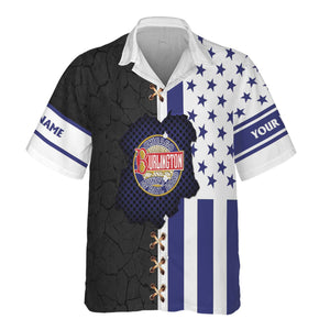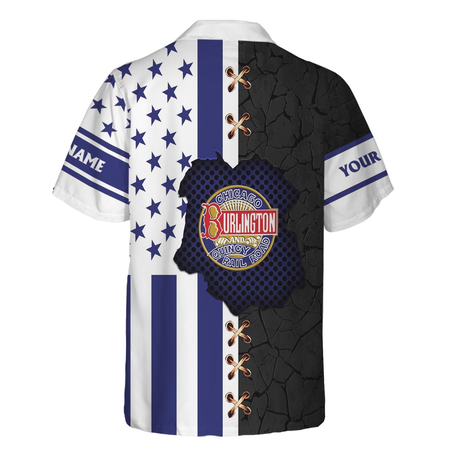 Railspirit Personalized Chicago, Burlington and Quincy Railroad Hawaiian Shirt American Flag with Crack Effect Train Shirt