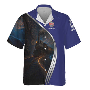 Railspirit Personalized Chicago, Burlington and Quincy Railroad Hawaiian Shirt Steampunk Locomotive with Custom Year Train Shirt