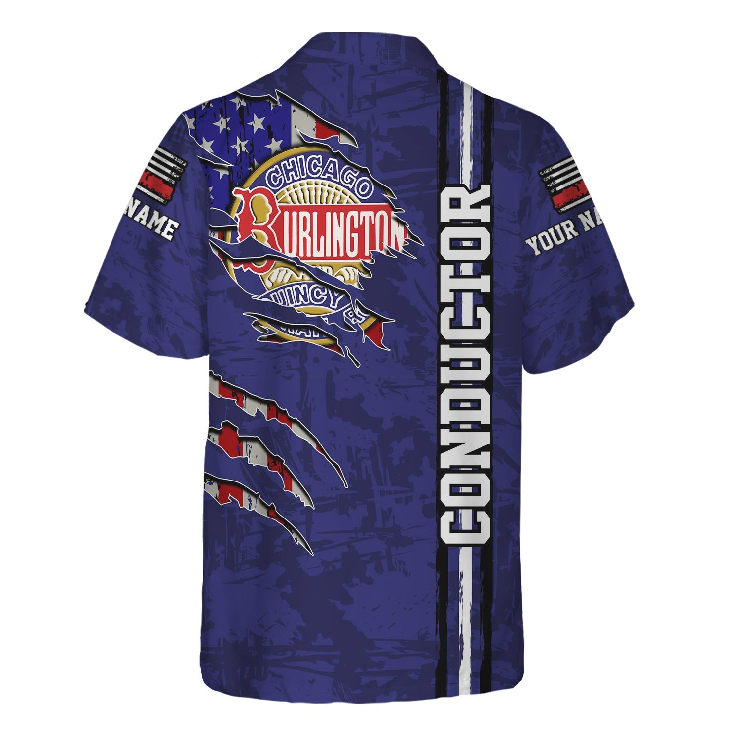 Railspirit Personalized Chicago, Burlington and Quincy Railroad Hawaiian Shirt USA Flag Claw Art with Custom Job Train Shirt