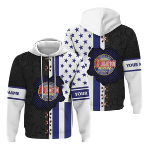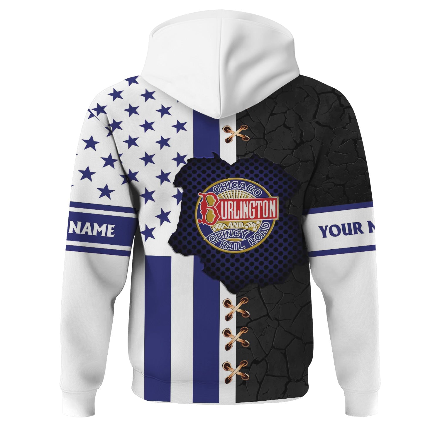 Railspirit Personalized Chicago, Burlington and Quincy Railroad Hoodie American Flag with Crack Effect Train Zip Up Hoodie