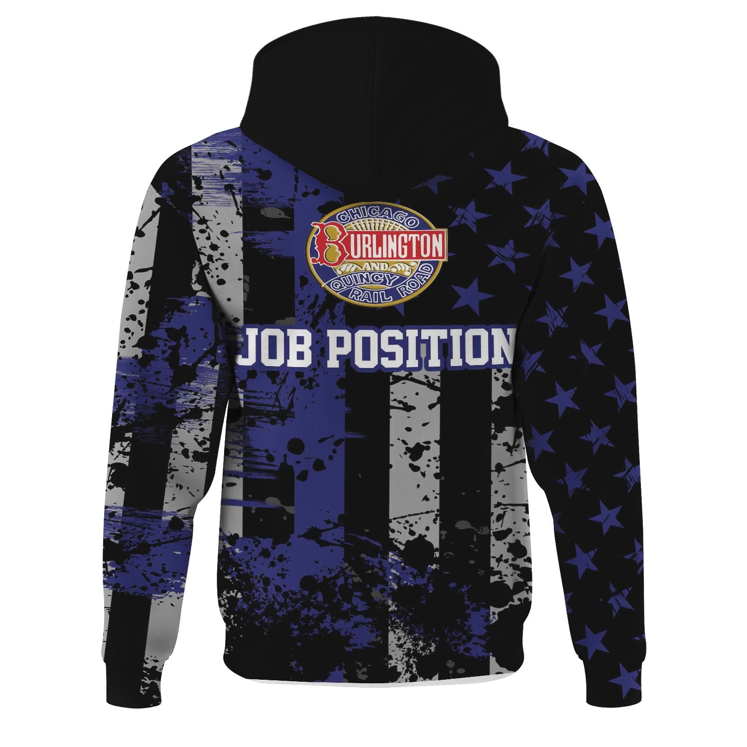 Railspirit Personalized Chicago, Burlington and Quincy Railroad Hoodie Artistic Paint American Flag Style Train Zip Up Hoodie