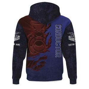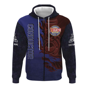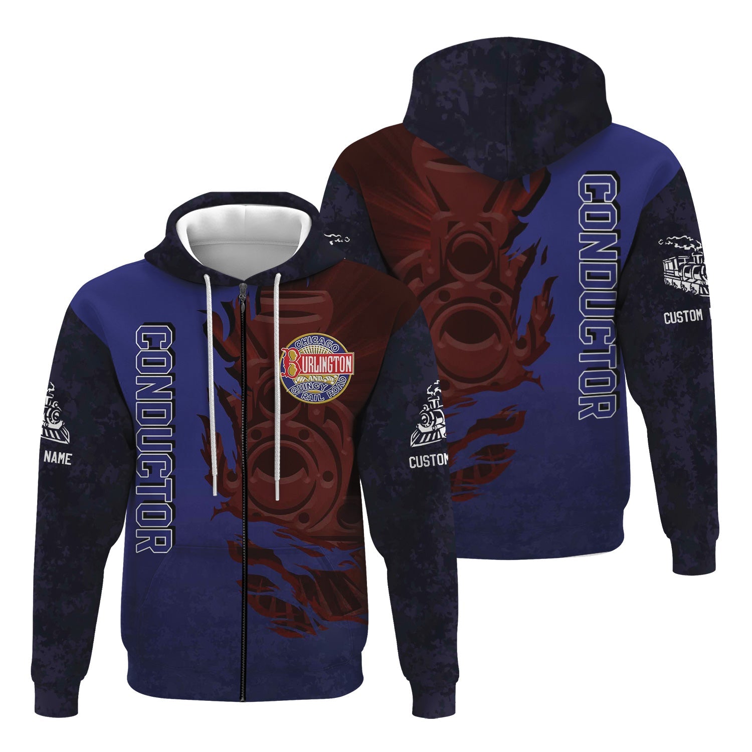 Railspirit Personalized Chicago, Burlington and Quincy Railroad Hoodie Blazing Style with Custom Position Train Zip Up Hoodie