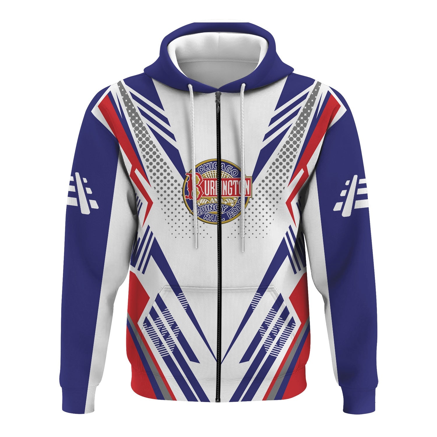 Railspirit Personalized Chicago, Burlington and Quincy Railroad Hoodie Railroad Tribute Design Train Zip Up Hoodie for Train Lovers