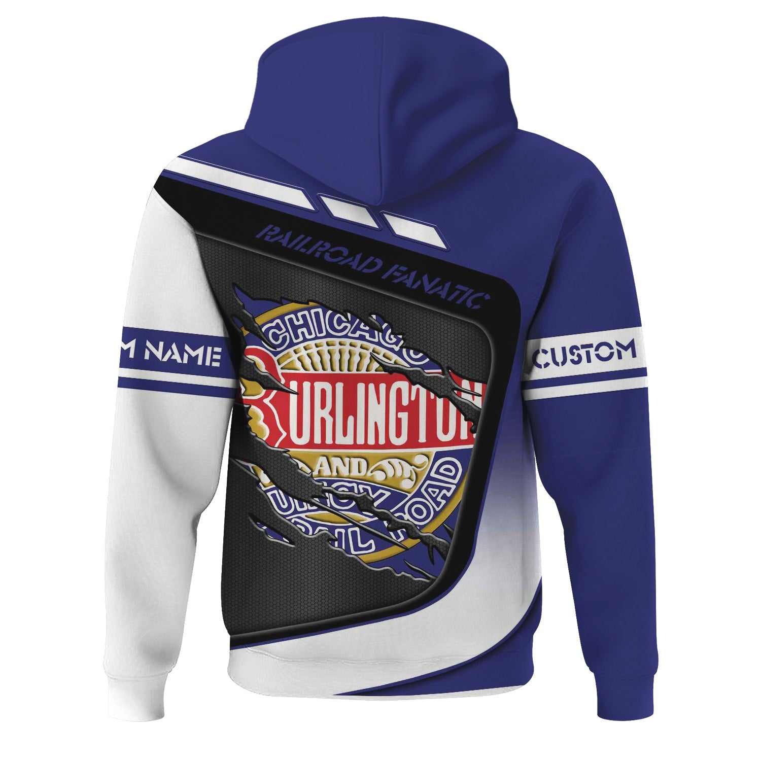 Railspirit Personalized Chicago, Burlington and Quincy Railroad Hoodie Ripped Texture Style Train Zip Up Hoodie For Railroad Fanatic