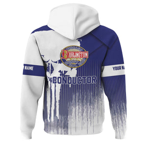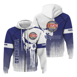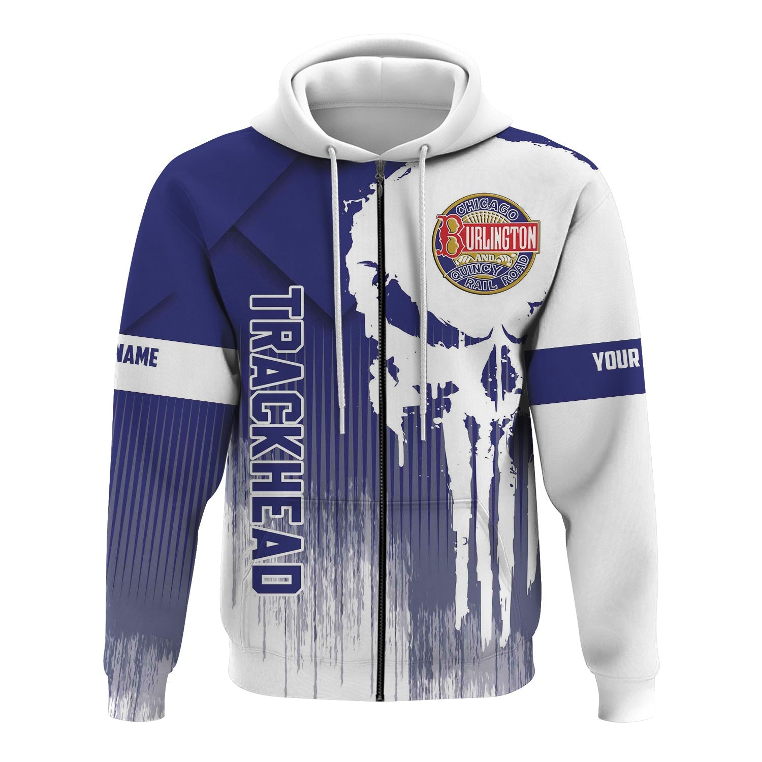 Railspirit Personalized Chicago, Burlington and Quincy Railroad Hoodie Skull Design with Custom Job Train Zip Up Hoodie for Trackhead Crew