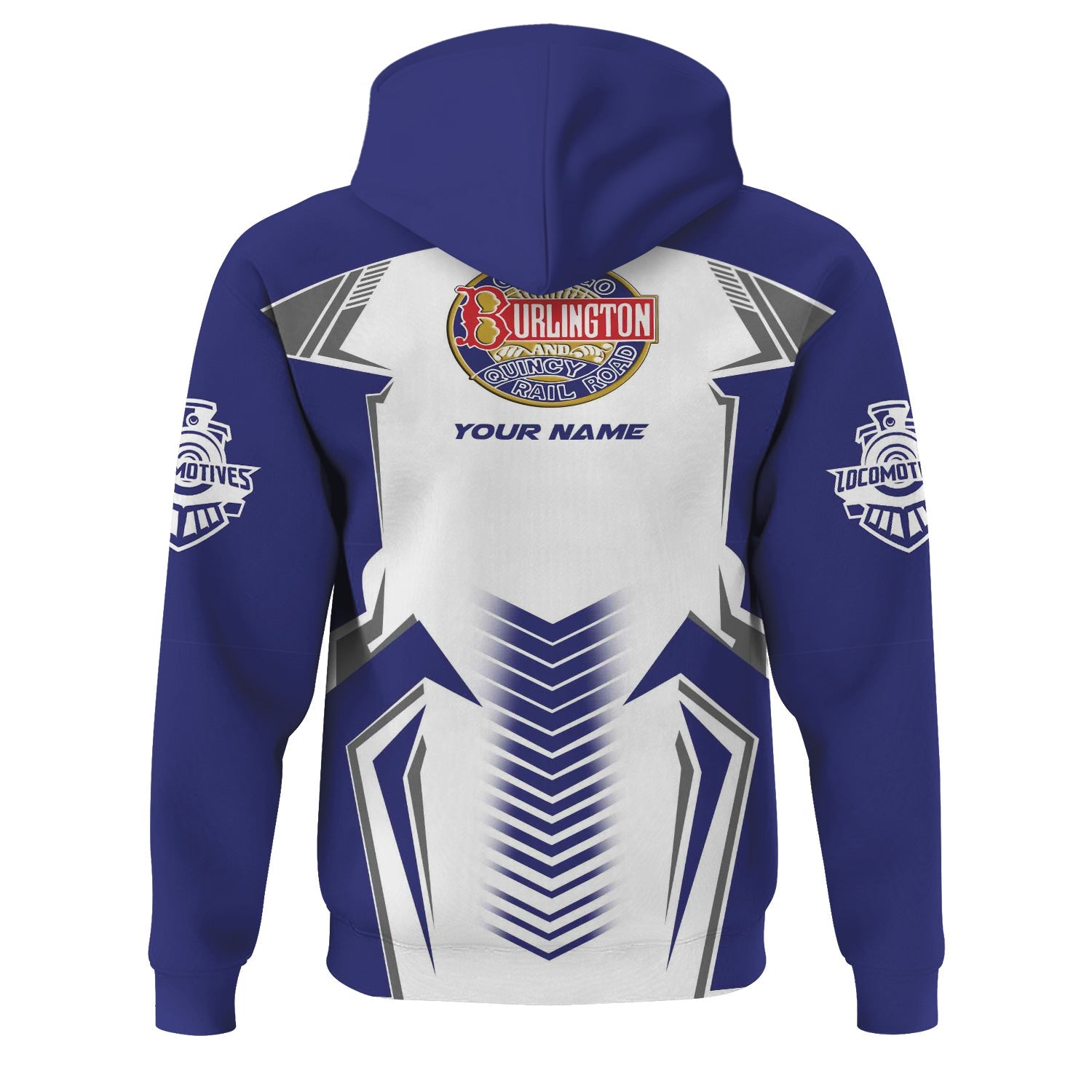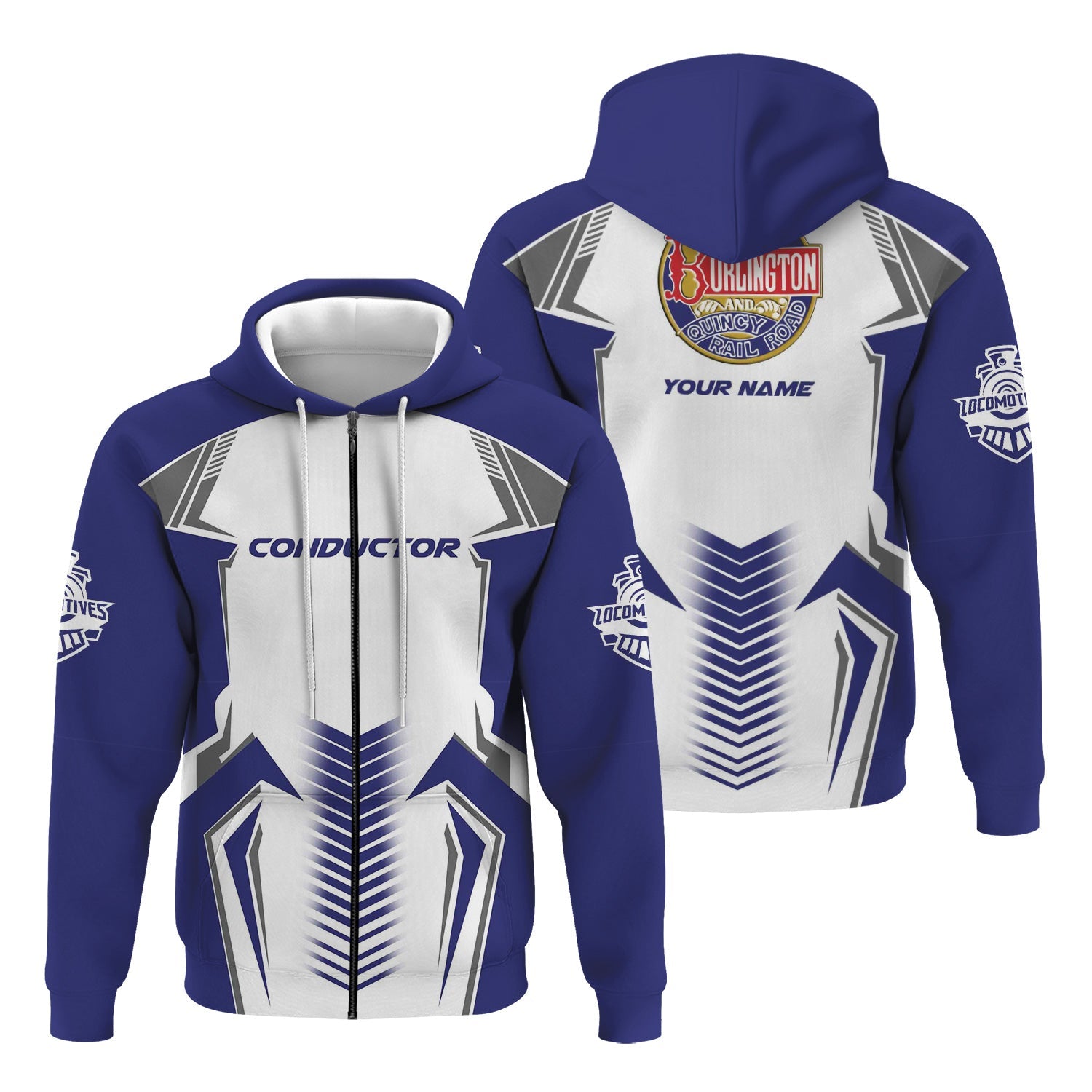 Railspirit Personalized Chicago, Burlington and Quincy Railroad Hoodie Standout Style with Custom Position Train Zip Up Hoodie