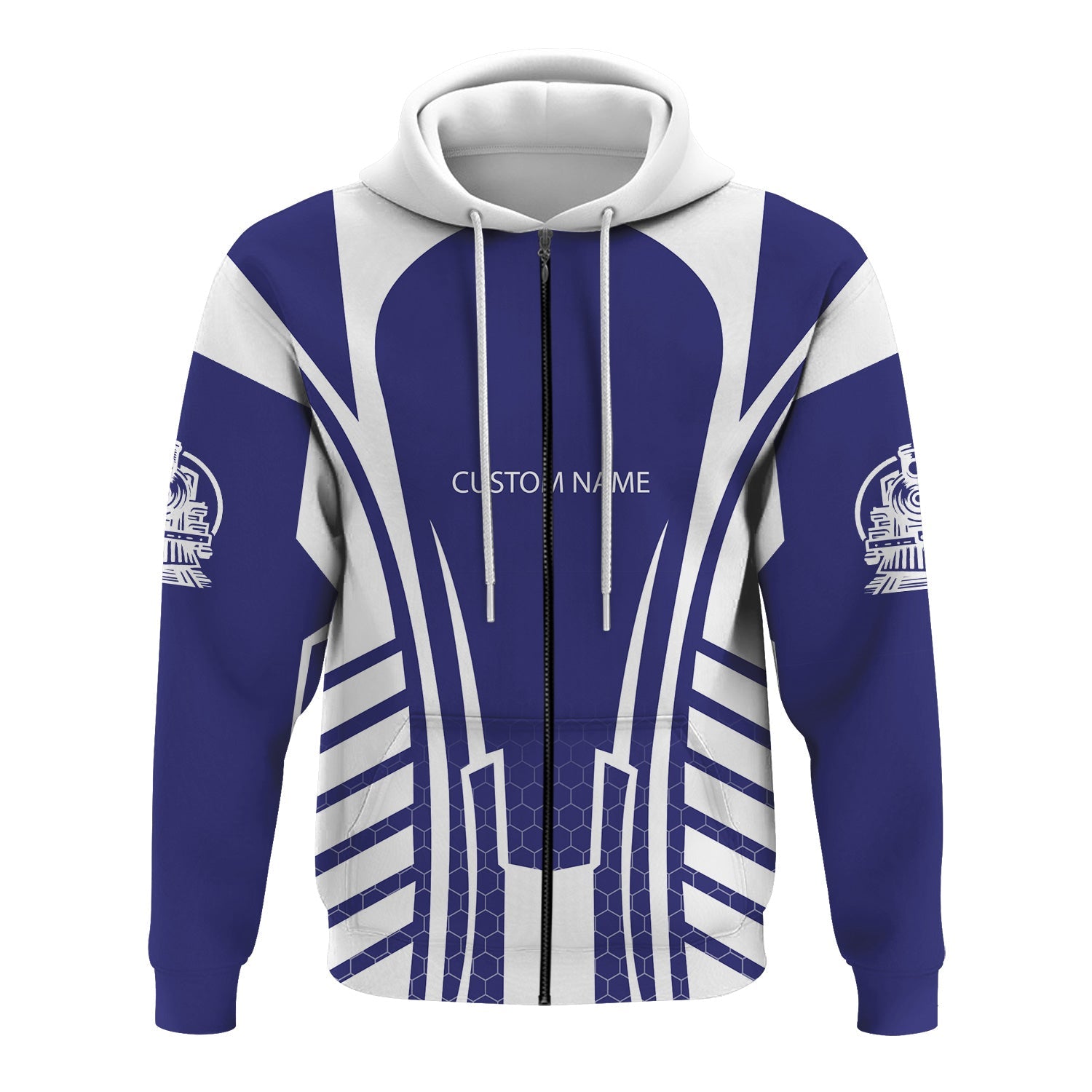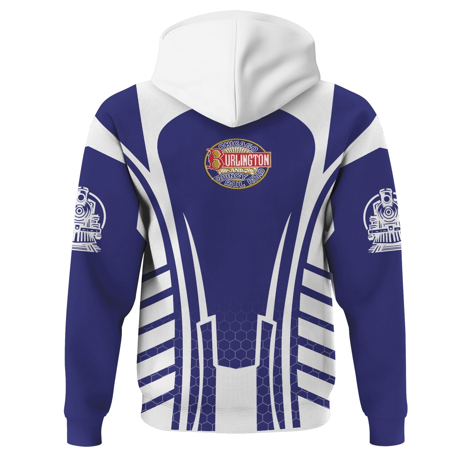 Railspirit Personalized Chicago, Burlington and Quincy Railroad Hoodie Striped Railroad Style Train Zip Up Hoodie All Over Print
