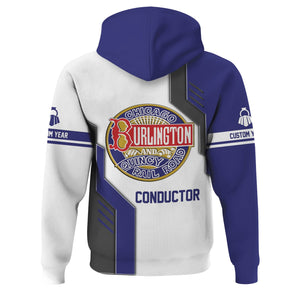 Railspirit Personalized Chicago, Burlington and Quincy Railroad Hoodie Unique Railway Style with Custom Job Train Zip Up Hoodie
