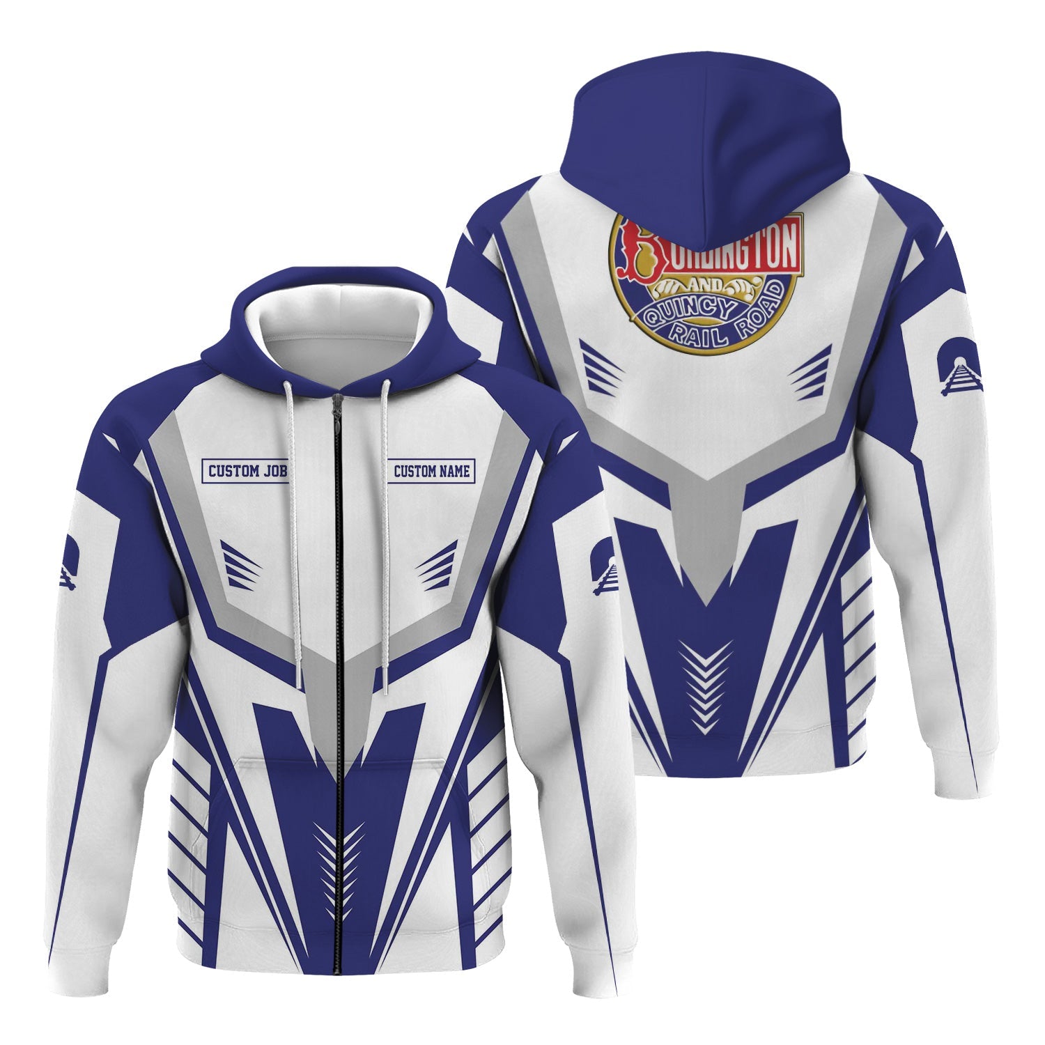 Railspirit Personalized Chicago, Burlington and Quincy Railroad Hoodie Workwear-Inspired with Custom Position Train Zip Up Hoodie