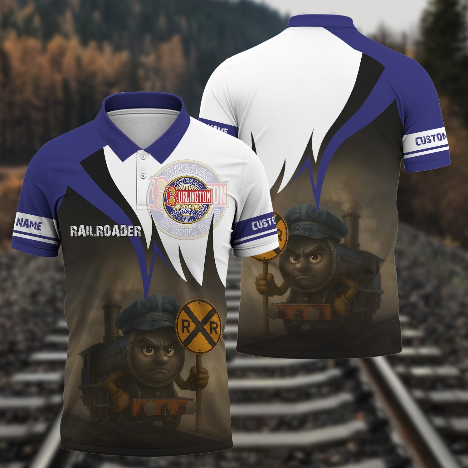 Railspirit Personalized Chicago, Burlington and Quincy Railroad Polo Shirt Angry Train Polo Shirt Gift Idea For Train Lover