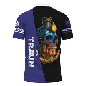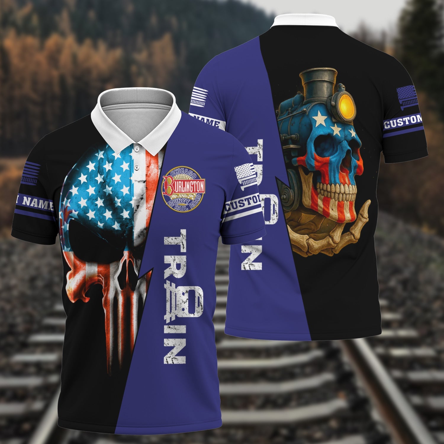 Railspirit Personalized Chicago, Burlington and Quincy Railroad Polo Shirt Train Skull American Flag Shirt All Over Print