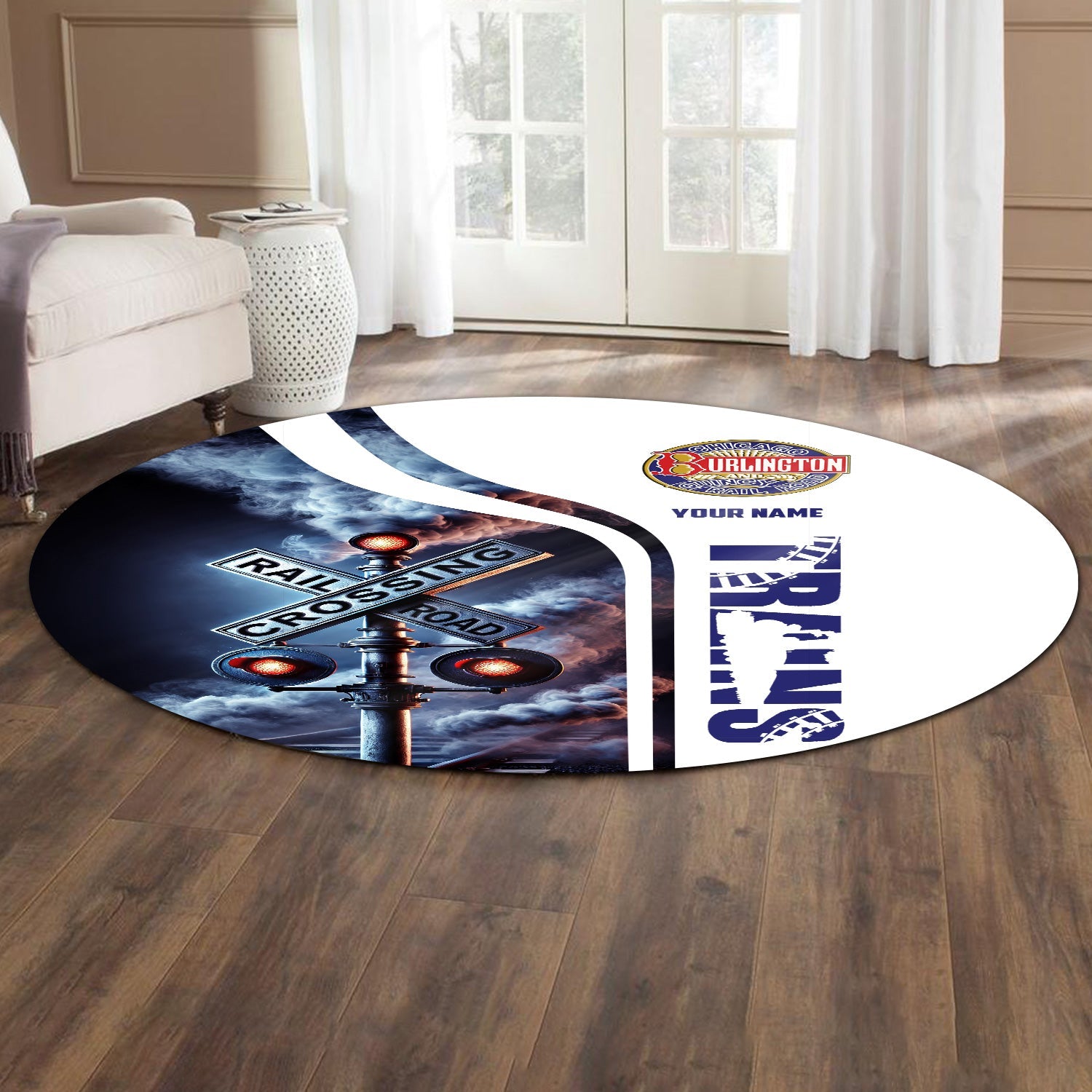 Railspirit Personalized Chicago, Burlington and Quincy Railroad Round Mat Railroad Crossing Sign Mat All Over Print