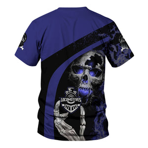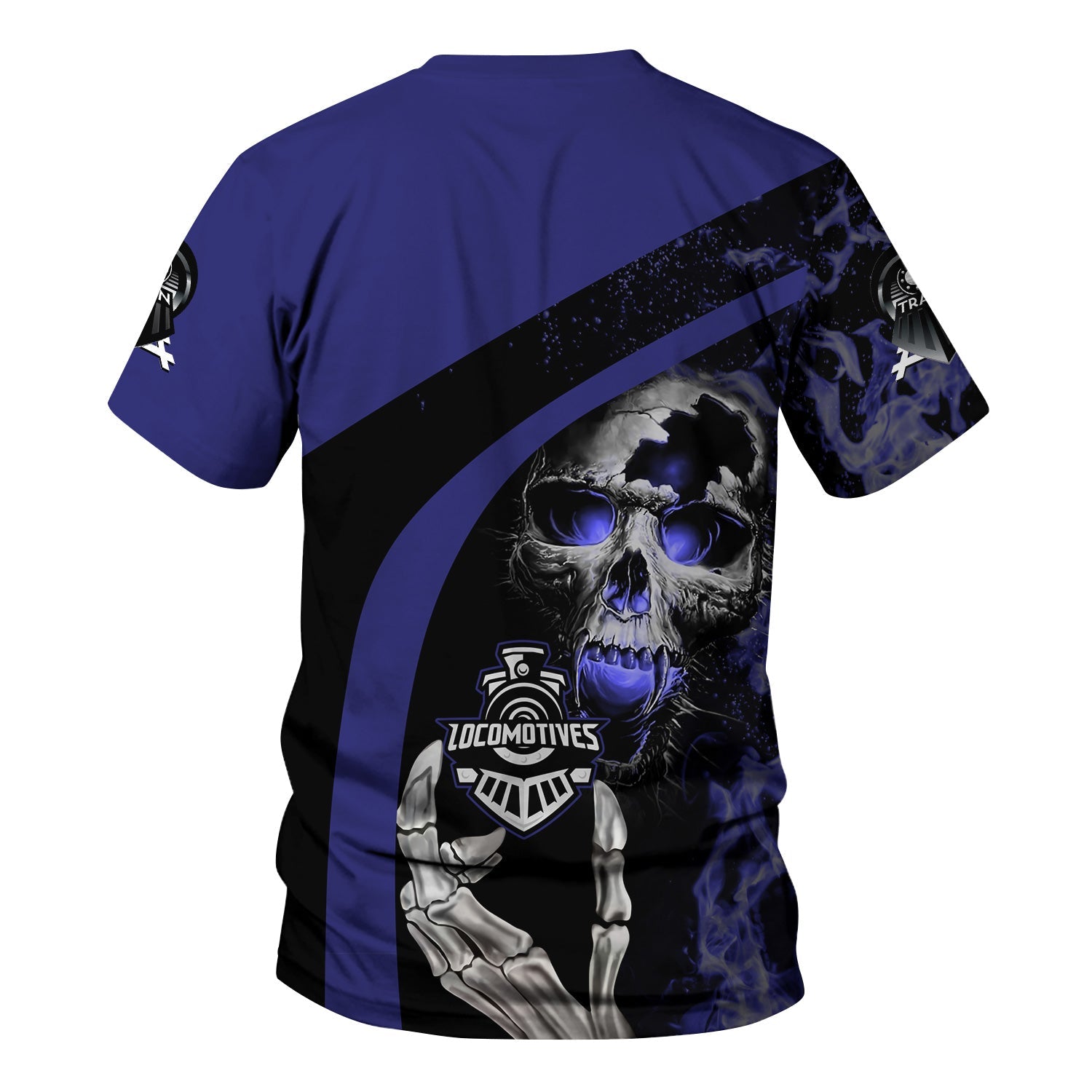 Railspirit Personalized Chicago, Burlington and Quincy Railroad T-Shirt Flame Skull Design Train Shirt for Locomotive Fans