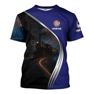 Railspirit Personalized Chicago, Burlington and Quincy Railroad T-Shirt Steampunk Locomotive with Custom Year Train Shirt
