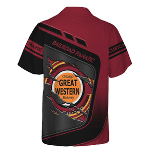 Railspirit Personalized Chicago Great Western Railroad Hawaiian Shirt Ripped Texture Style Train Shirt For Railroad Fanatic