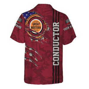Railspirit Personalized Chicago Great Western Railroad Hawaiian Shirt USA Flag Claw Art with Custom Job Train Shirt
