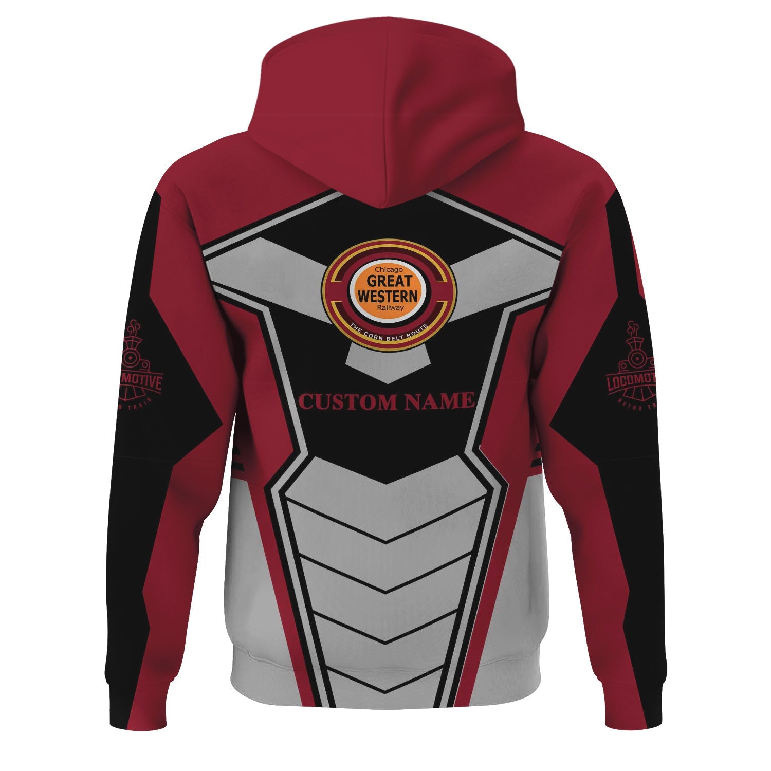 Railspirit Personalized Chicago Great Western Railroad Hoodie Engine-Inspired Style Train Zip Up Hoodie for Railroad Fanatic
